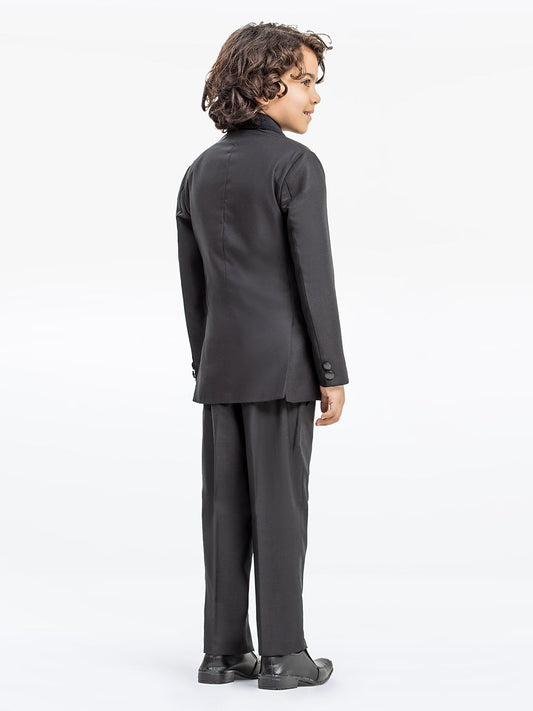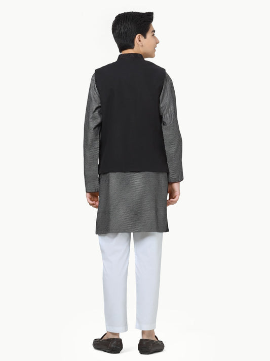 Boy's Black & Charcoal Waist Coat Suit