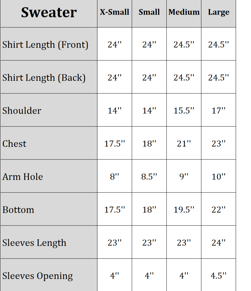 - Full sleeves